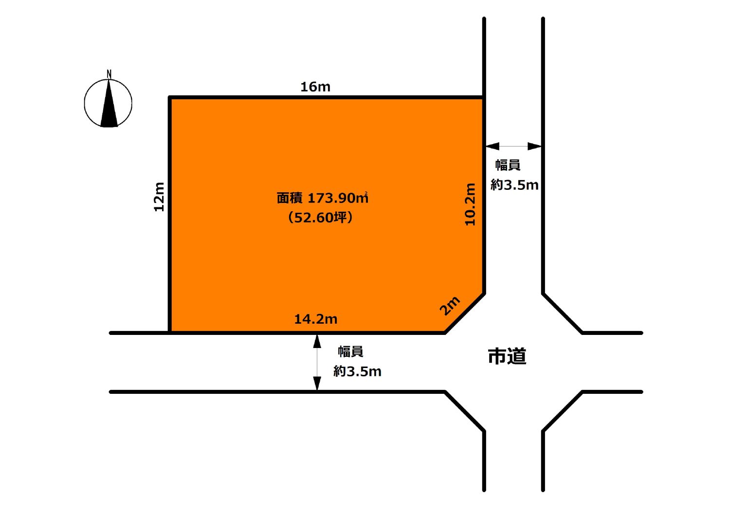 | 接道状況1 | 南 約3.5m(公道)間口:約14.2m | ||